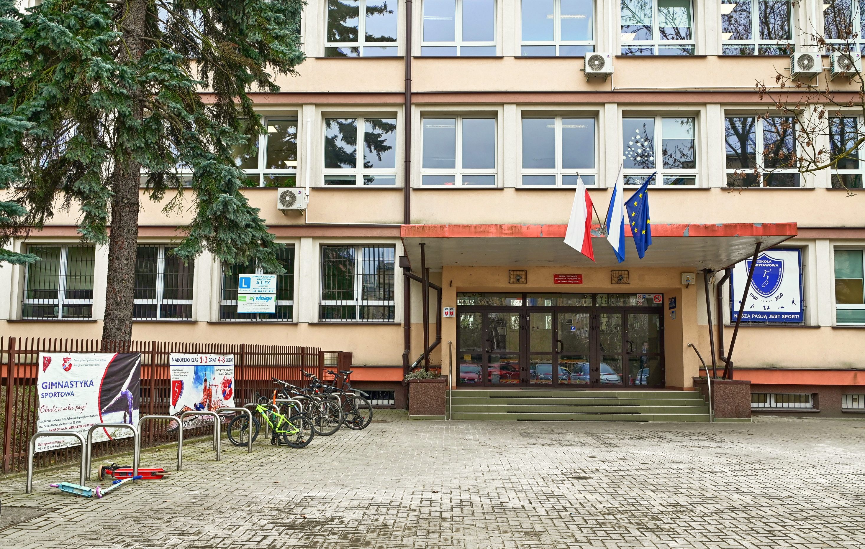 Szkoła Podstawowa z Oddziałami Sportowymi nr 5 im. Polskich Olimpijczyków powstała w ramach akcji „Tysiąc Szkół na Tysiąclecie Państwa Polskiego”. 19 listopada 1960 roku nastąpiło uroczyste przekazanie władzom oświatowym budynku w rejonie ulic: Chocimskiej i alei Kijowskiej (wtedy alei Inwalidów).